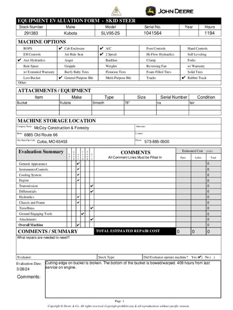 Free PDF SKID STEER EVALUATION FORM Doc Google eBookstore