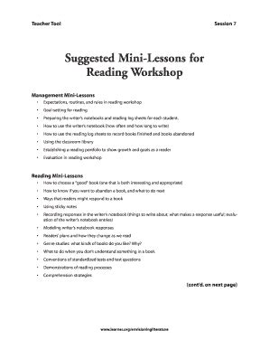 Read Suggested Mini-Lessons for Reading Workshop Doc